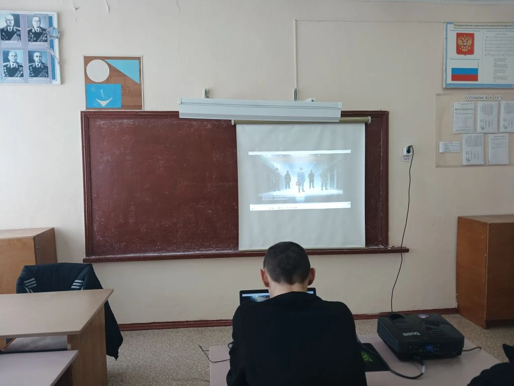 В ходе месячника патриотического воспитания в школе был проведен урок Мужества. Ребятам было рассказано о подвигах российских солдат, защищавших нашу родную страну.